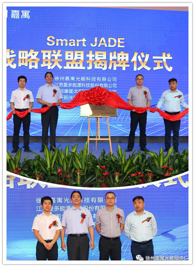 6月29日,徐州嘉寓光能開(kāi)幕投產(chǎn)暨戰(zhàn)略簽約儀式隆重舉行。中國(guó)光伏行業(yè)協(xié)會(huì)秘書(shū)長(zhǎng)王勃華、沛縣常務(wù)副縣長(zhǎng)吳以貴、國(guó)家發(fā)改委能源研究所王斯成教授、國(guó)家光電建筑應(yīng)用委員會(huì)主任梁岳峰、沛縣縣委常委/開(kāi)發(fā)區(qū)黨工委書(shū)記于帆、嘉寓集團(tuán)董事長(zhǎng)田家玉、嘉寓股份副董事長(zhǎng)/執(zhí)行總裁陳其澤、嘉寓股份董事張初虎等領(lǐng)導(dǎo)及嘉賓出席投產(chǎn)儀式。