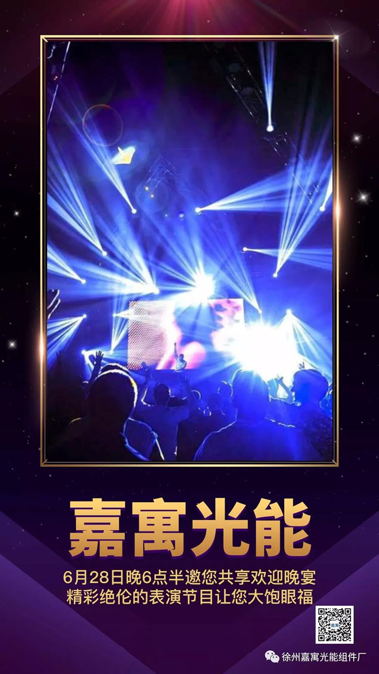 6月29日與您相約嘉寓光能科技有限公司廠區(qū),和業(yè)界精英們共同為嘉寓光能揭牌亮相,更有精彩的聯(lián)盟簽約,讓我們攜手奮進(jìn),共襄盛舉!屆時(shí),略備薄酒,以示謝意。