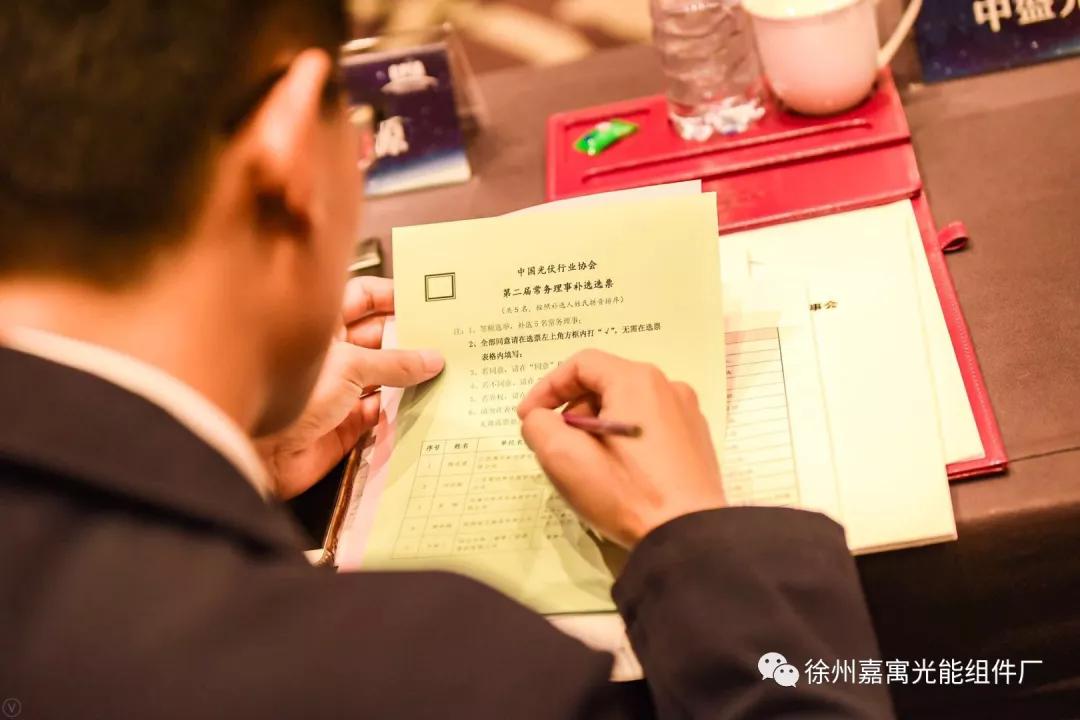 徐州嘉寓光能科技有限公司總經理陳志榮受邀出席本次盛會。會上,補選了中國光伏行業協會第二屆理事、常務理事。陳志榮總經理榮升第二屆理事。