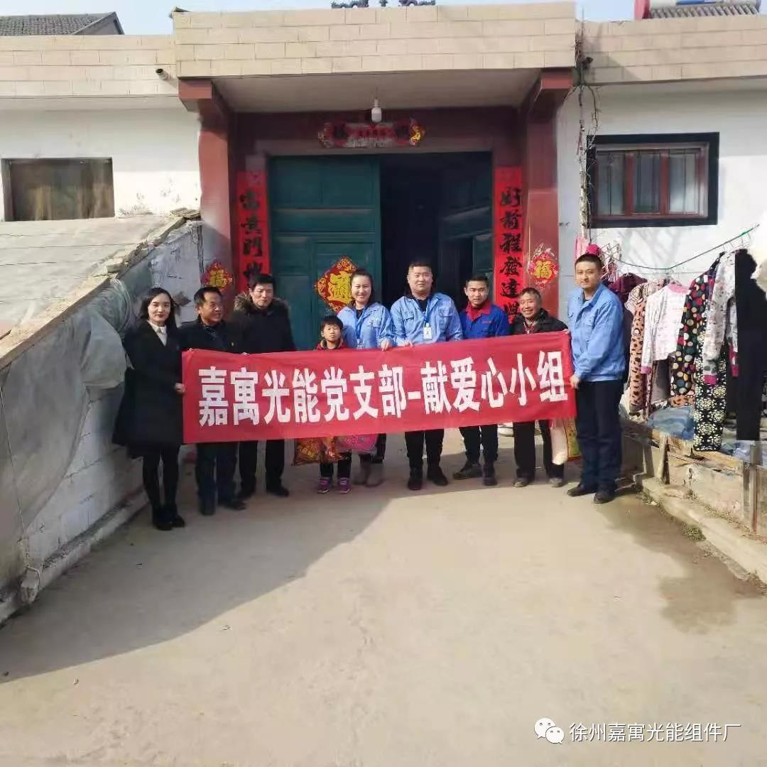 近日,沛縣經濟開發區黨委,組織各企業獻愛心活動。徐州嘉寓光能黨支部積極響應,組成愛心慰問小組,深入群眾,慰問孤殘貧困兒童,為他們送去生活慰問品,并且為學齡兒童送去了書包、文具、讀物等愛心物資,鼓勵他們好好學習,爭做對社會有用之人。