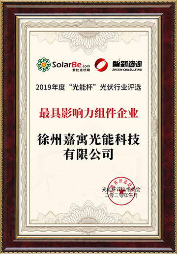 3月31日下午,由索比光伏網(wǎng)主辦的2019年度“光能杯”評(píng)選活動(dòng)暨光伏行業(yè)首個(gè)直播頒獎(jiǎng)典禮成功舉辦,此次線上直播受到了行業(yè)內(nèi)外的高度關(guān)注,徐州嘉寓光能科技有限公司在200多家報(bào)名企業(yè)中憑借強(qiáng)大創(chuàng)新力、出色的品質(zhì)與服務(wù)、卓越的品牌影響力,擷取了光伏行業(yè)評(píng)選"2019年度最具影響力組件企業(yè)"大獎(jiǎng)。